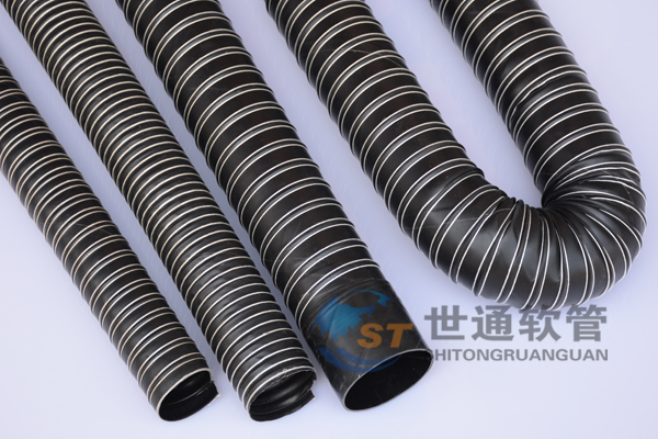 材料:螺旋圈:高弹力钢丝 ,耐高温玻纤线 管壁:单层或者双层氯丁胶涂层玻璃纤维布